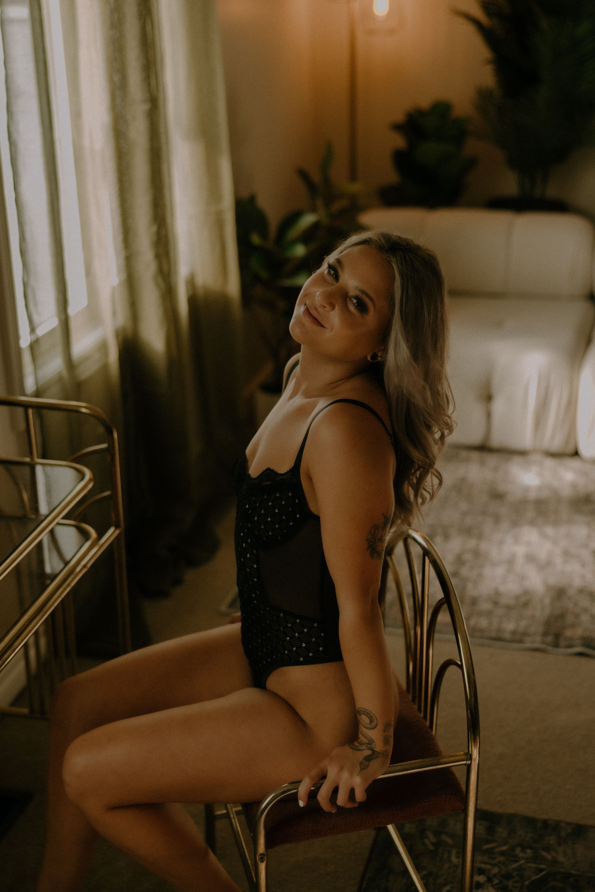 in Studio boudoir session shot by Bare Soul Boudoir in London Ontario with Honey Bonus set added
