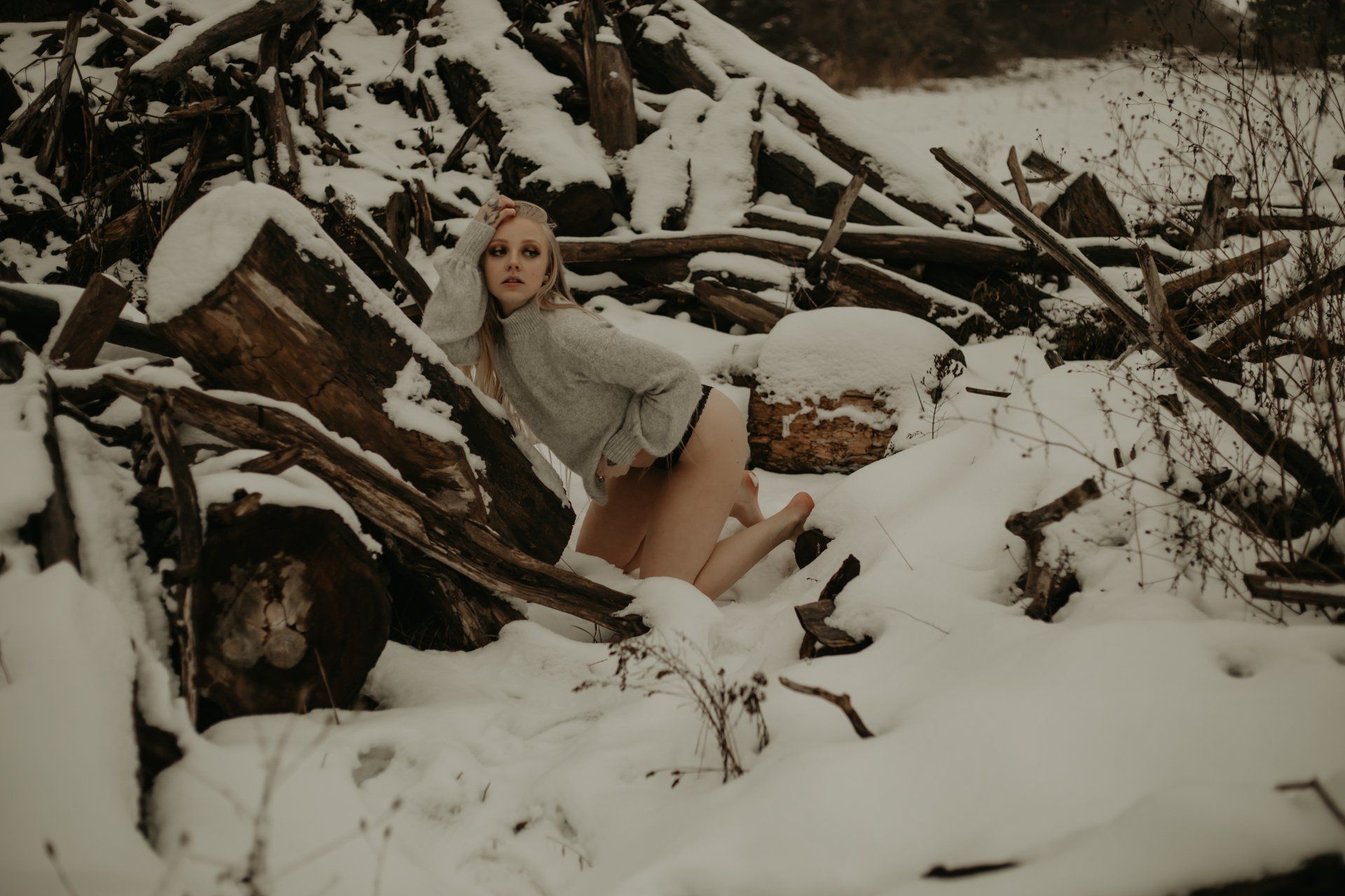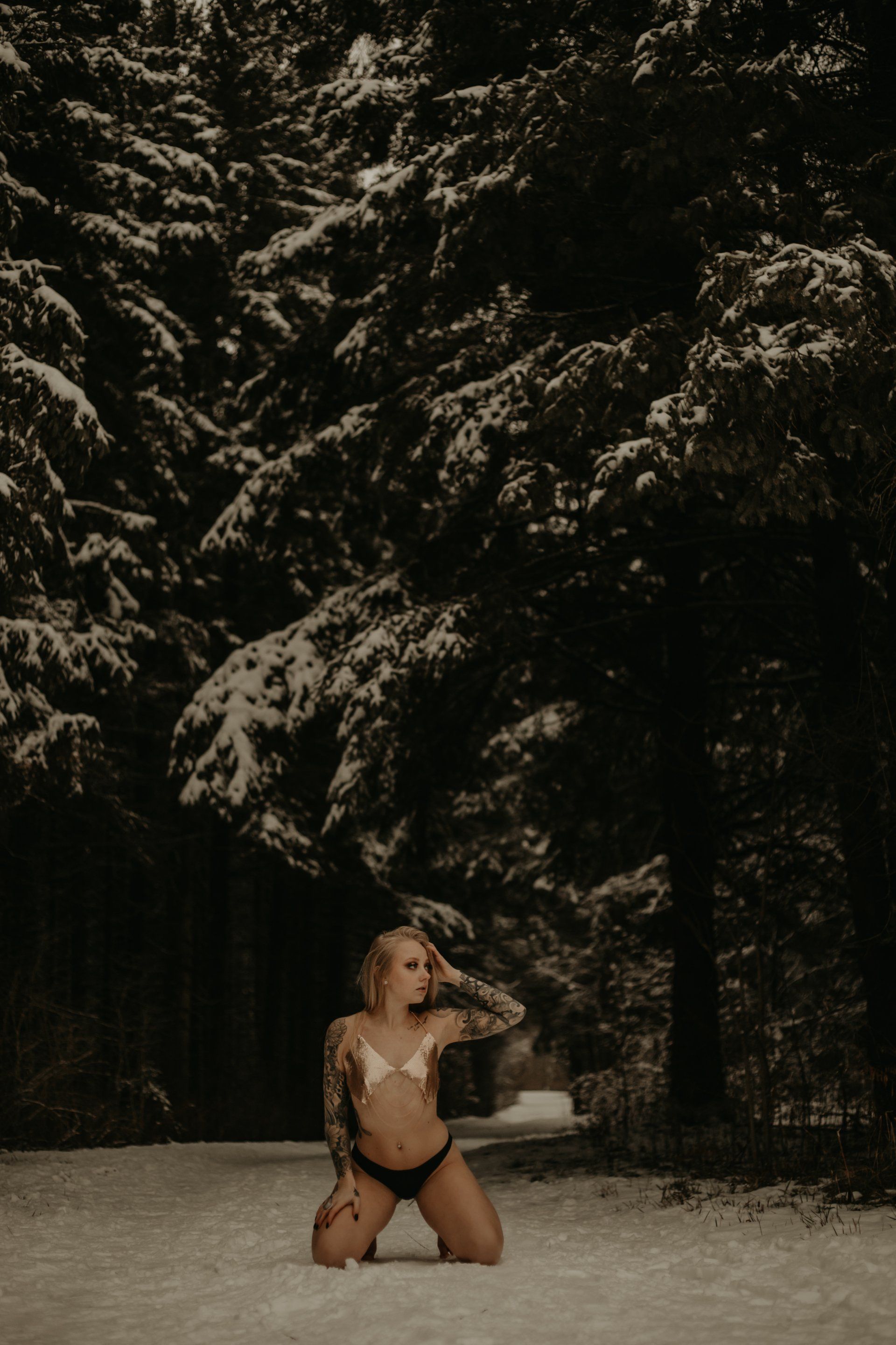 For at least the last year I've had this vision of shooting boudoir in a snowy forest. So I figured who better to bring that vision to life than ME. Yup, I stripped down in the forest in -6 degree weather. I DID THAT.