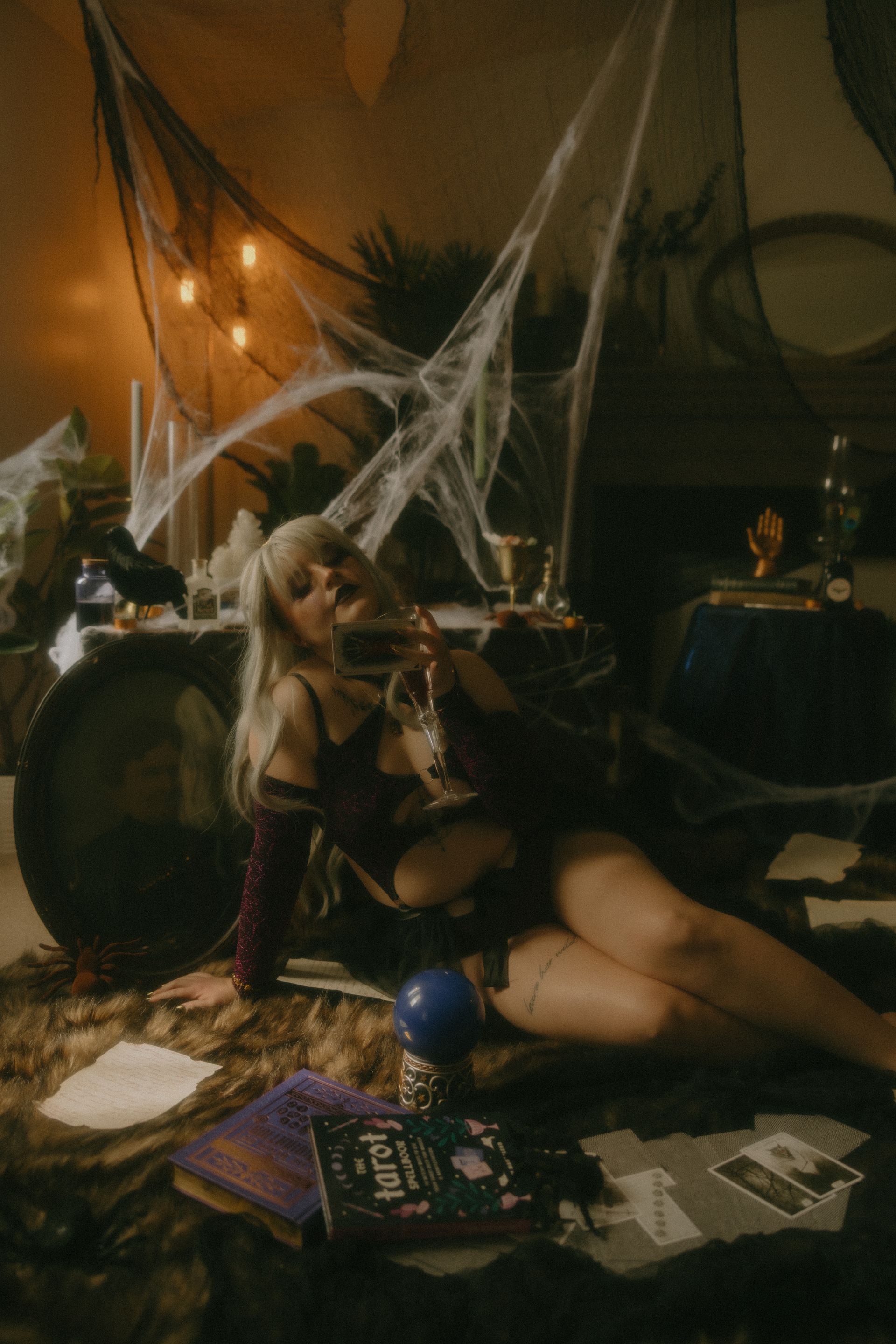 Tarot Reader Halloween Boudoir Session shot by Bare Soul Boudoir, London Ontario.