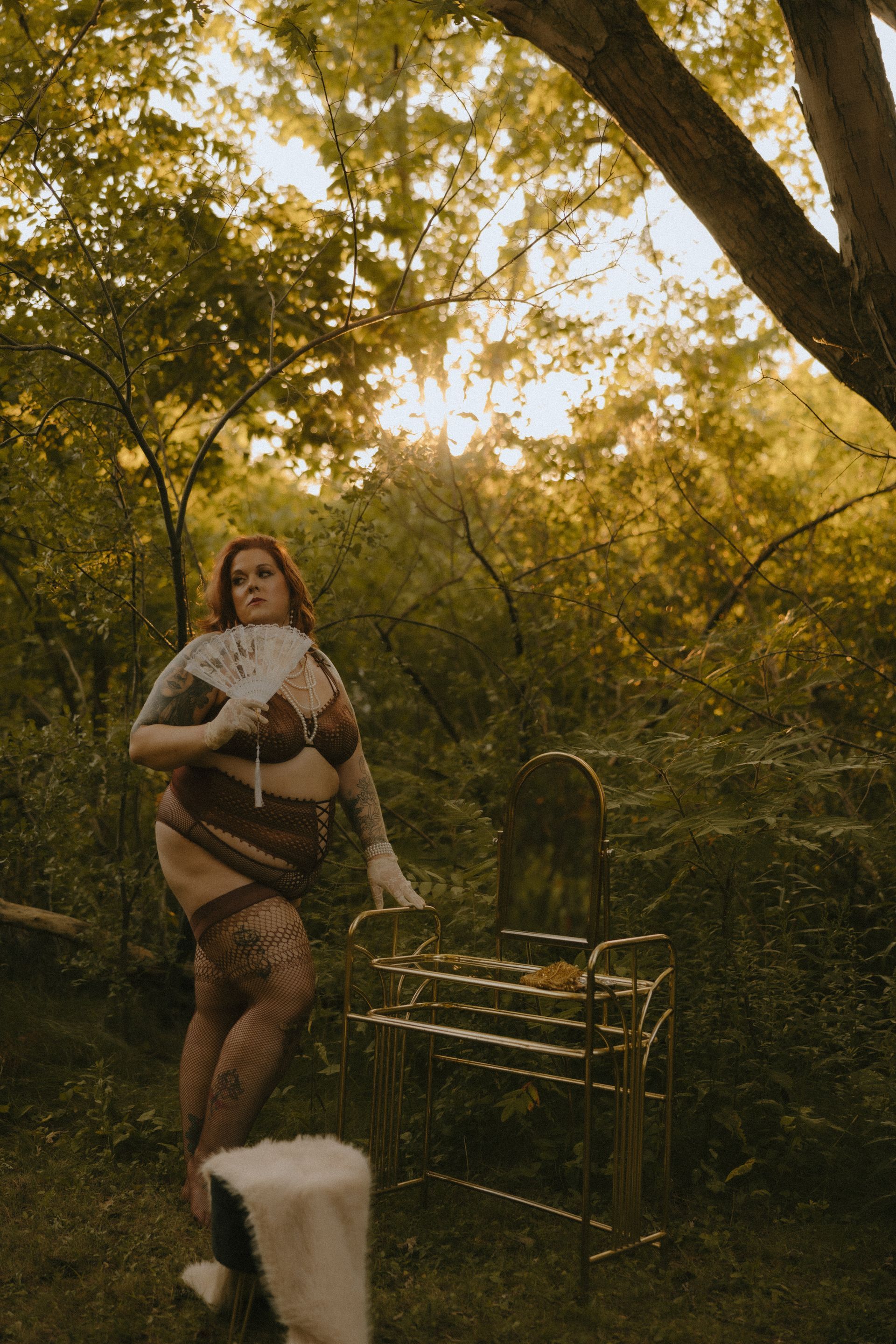 Vintage inspired outdoor boudoir session shot by Bare Soul Boudoir in London Ontario